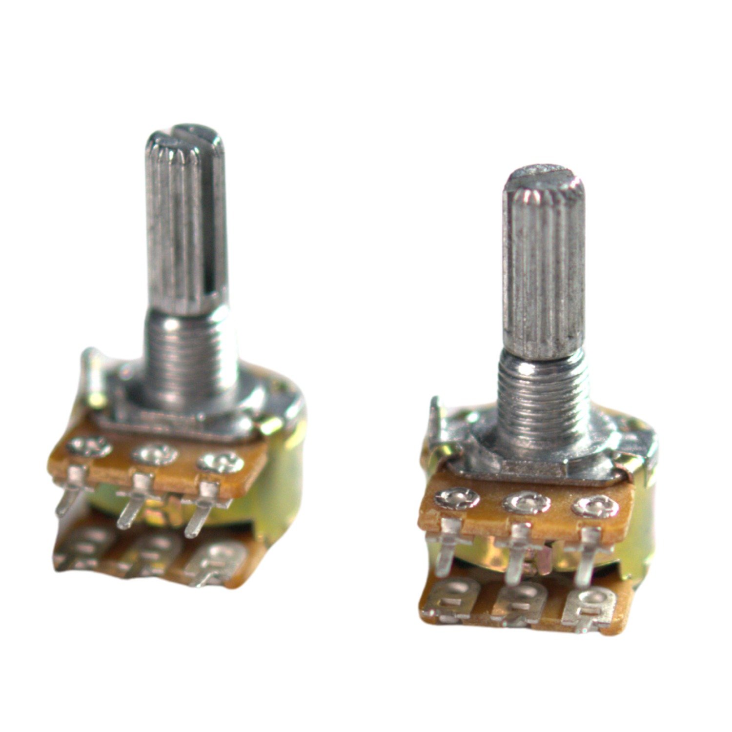 Conjunto com 10 potenciômetros duplo linear de 1MΩ, ideal para controle de volume, sinal, tensão ou corrente em projetos de áudio, automação e eletrônica com Arduino, ESP32, Raspberry Pi, entre outros.