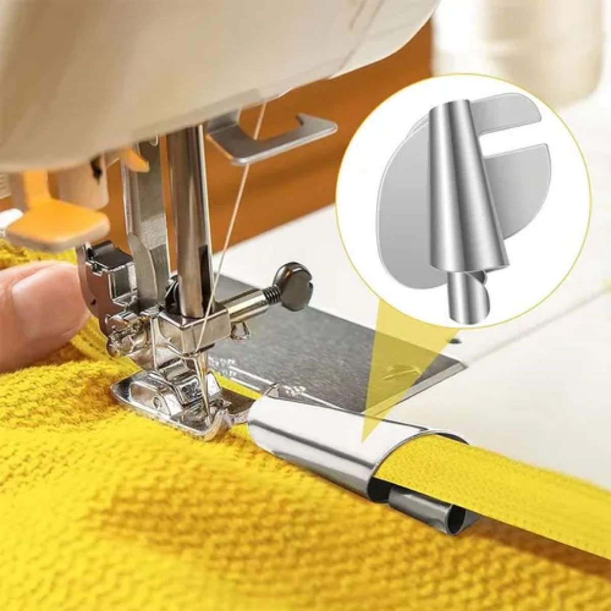 Acessório essencial para costuras com acabamento fino e profissional, ideal para tecidos leves e médios. Compatível com máquinas de costura reta domésticas e industriais.