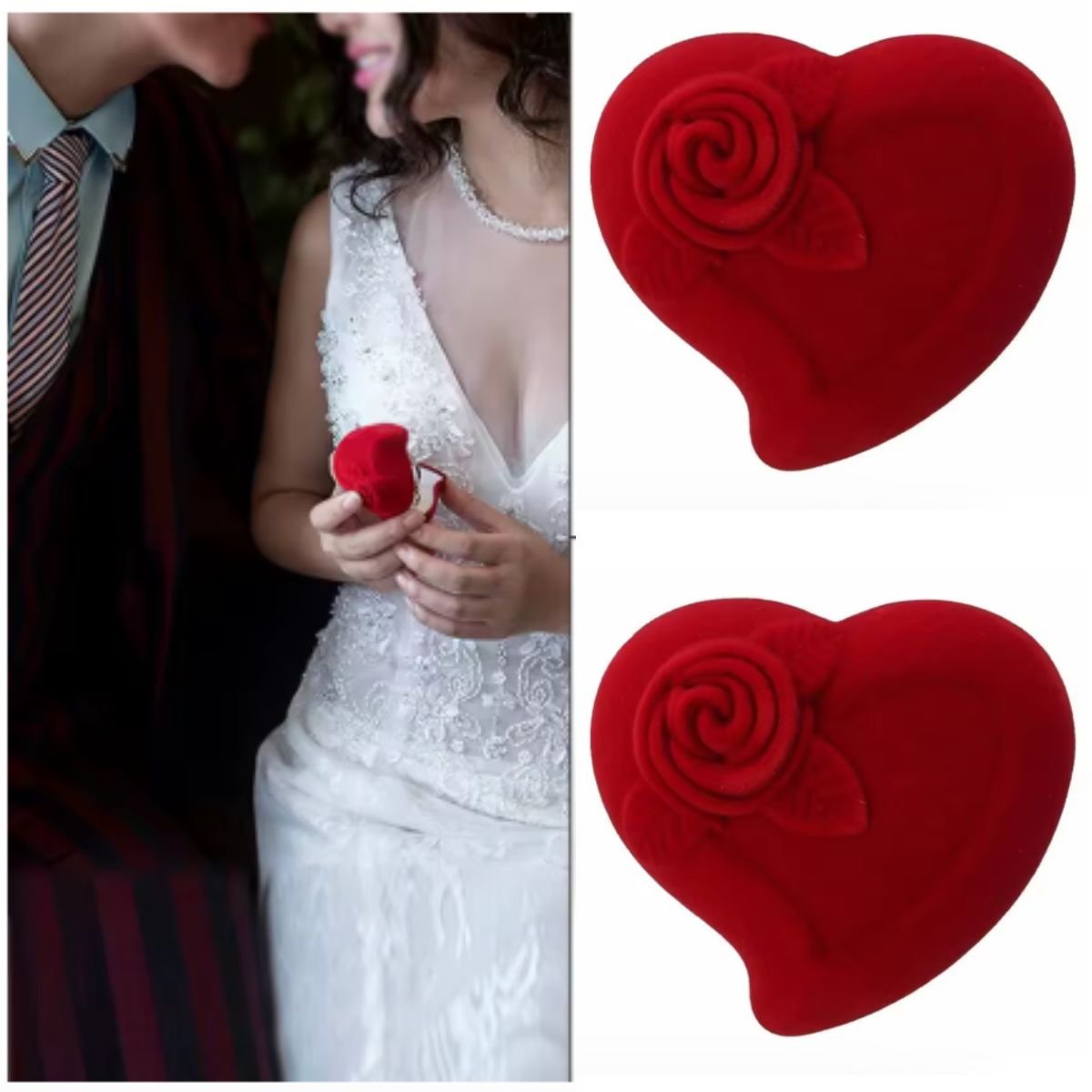 💝 Caixinha de Veludo para 2 Pares de Aliança | Modelo Coração Vermelho | Estojo Porta-Alianças
