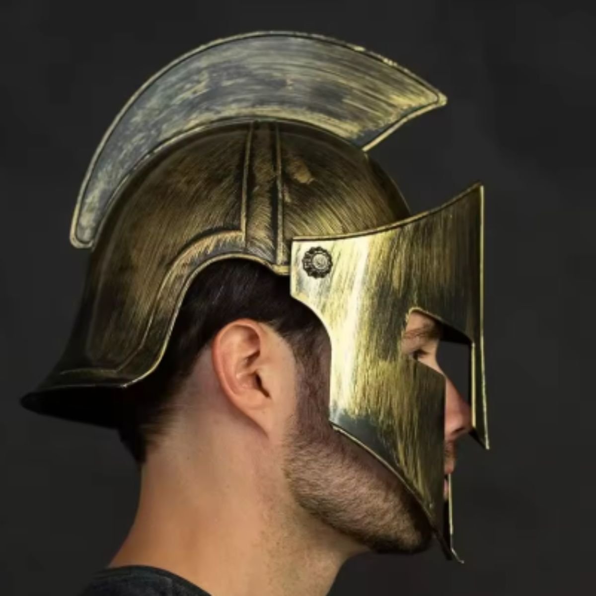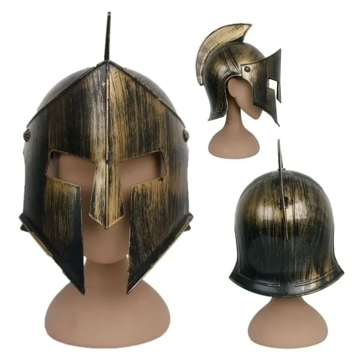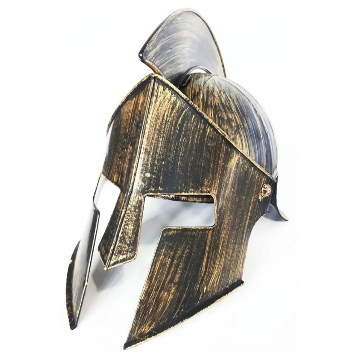 Capacete templário medieval ideal para cosplay, fantasias adultas, LARP, eventos temáticos e decoração medieval. Fabricado em plástico resistente, possui acabamento bronze (ouro envelhecido) com visual realista, viseira móvel e design confortável com ventilação. Leve, durável e imponente, perfeito para quem busca autenticidade medieval e destaque em qualquer ocasião.