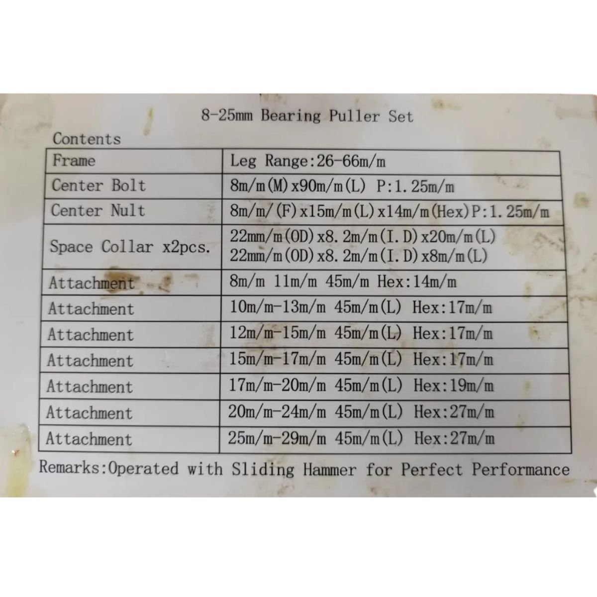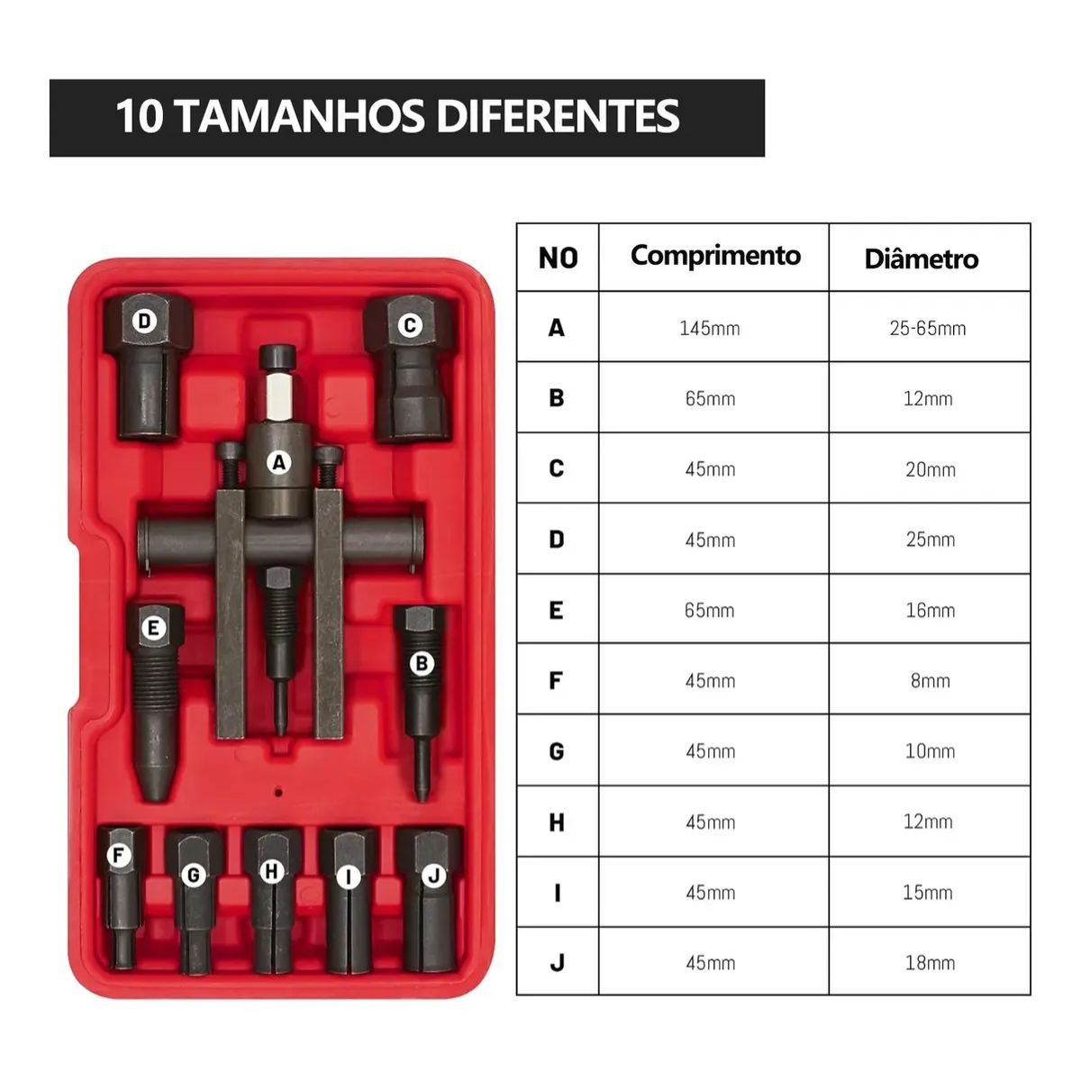 Extrator Rolamento Interno 10 Peças Jogo Motocicleta