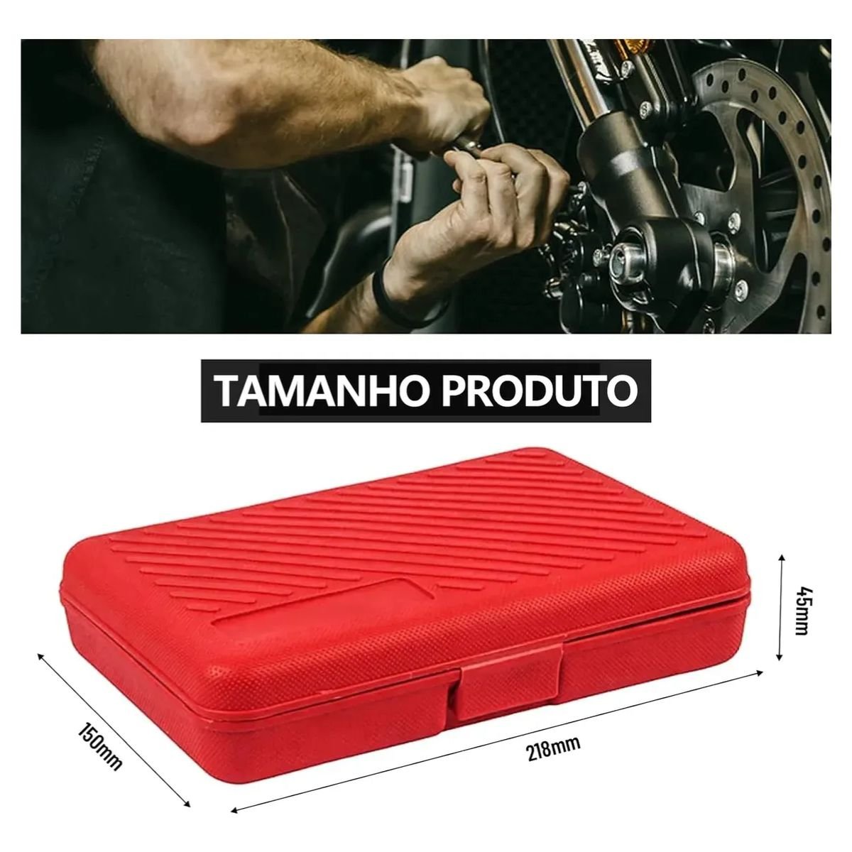 Ideal para quem busca um kit completo, resistente e eficiente para manutenção de motocicletas com qualidade profissional.
