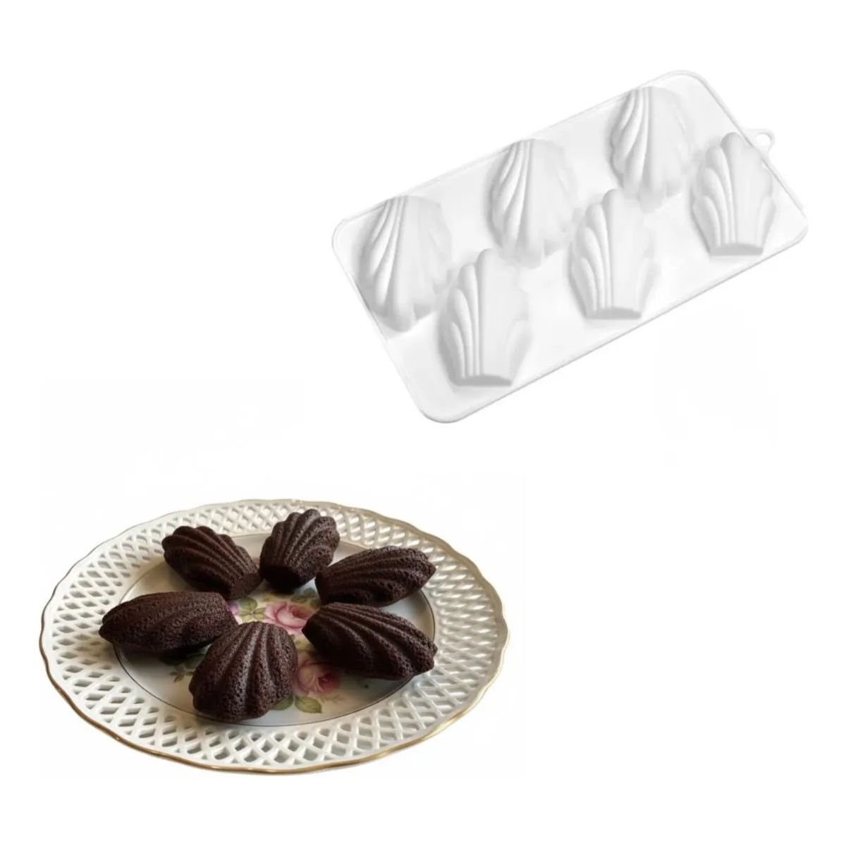Este molde de silicone atóxico, flexível e totalmente antiaderente é ideal para quem busca praticidade e acabamento profissional na confeitaria. Seu design em formato de concha permite criar Madeleines, bombons, chocolates, mini bolos, mousses e gelatinas com facilidade e perfeição.