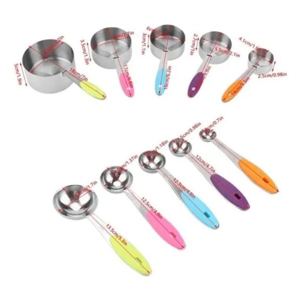 🥄 Kit 10 Peças Medidores em Inox – Xícaras e Colheres com Alça Antiderrapante