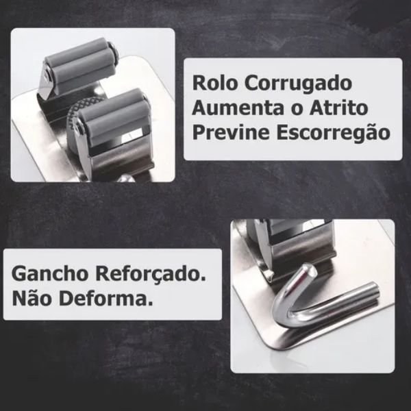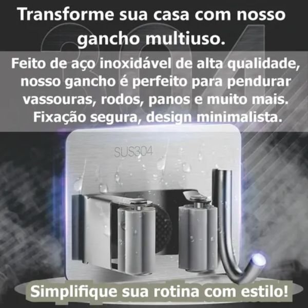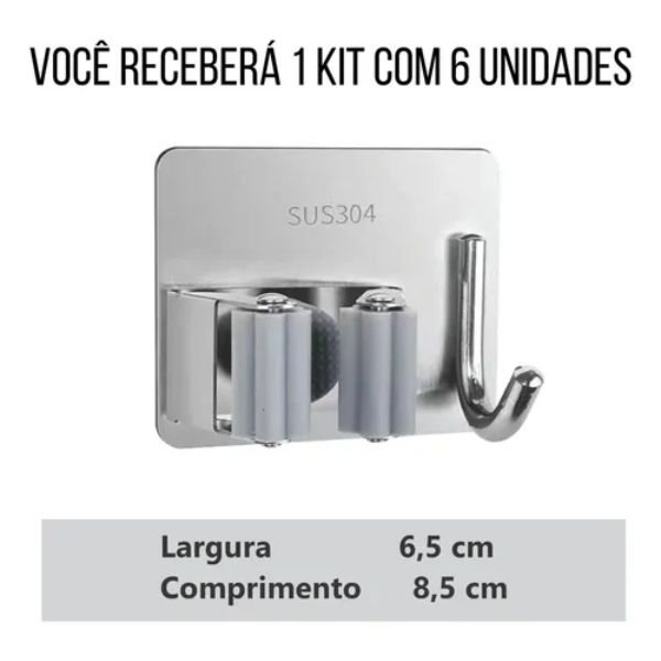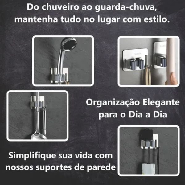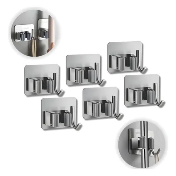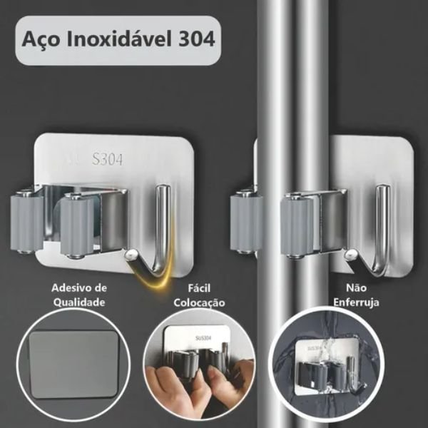 Organize sua casa com praticidade! O suporte adesivo de parede em aço inox permite pendurar vassouras, rodos, esfregões e utensílios sem furar. Ideal para cozinha, lavanderia, banheiro, garagem e muito mais.