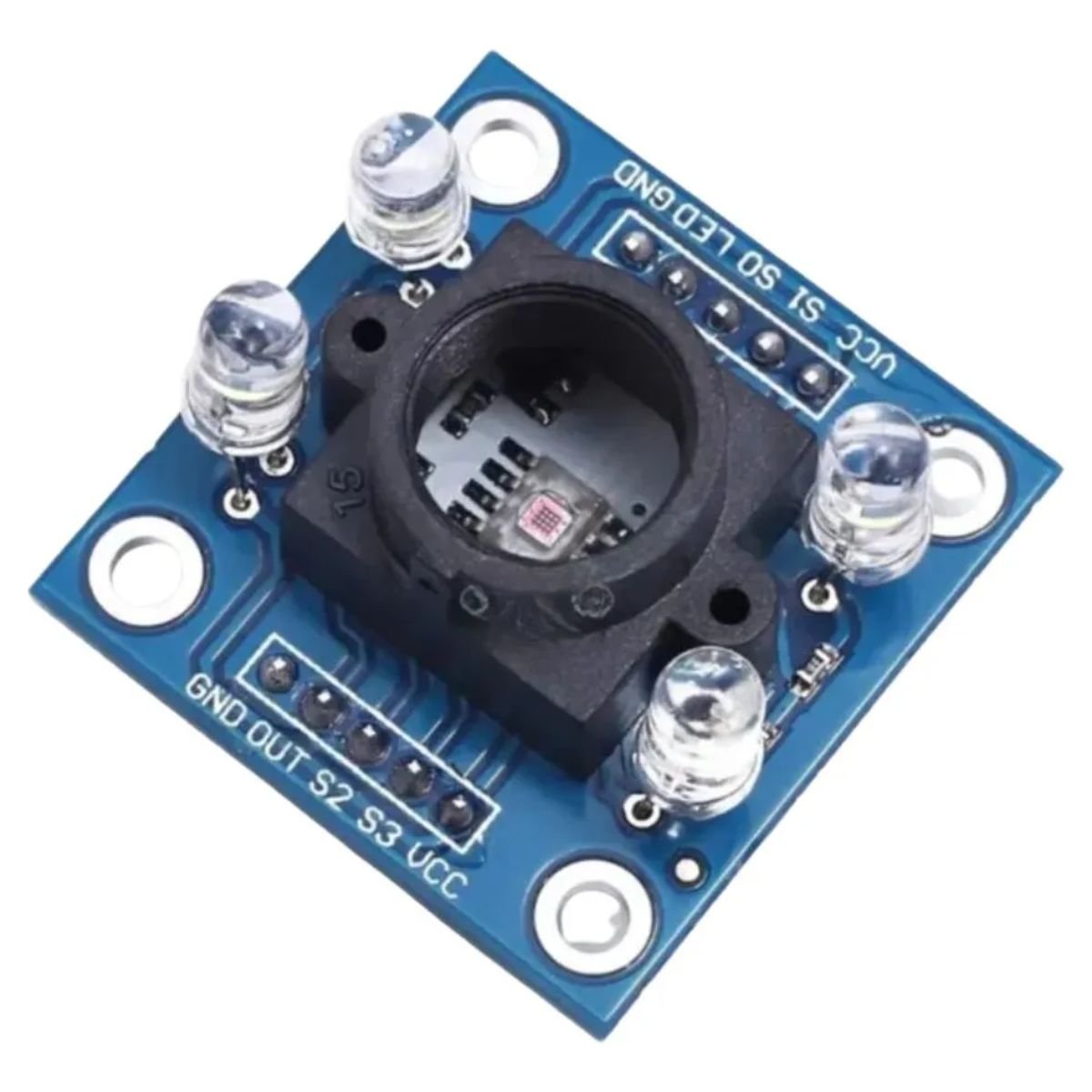 Ele detecta a intensidade de vermelho (R), verde (G) e azul (B) e converte essa informação em um sinal de frequência, facilitando a leitura por qualquer microcontrolador.