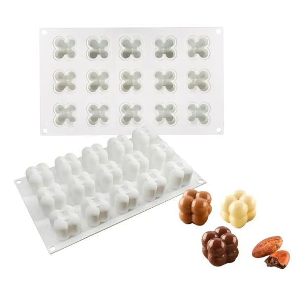 Forma de Silicone Mini Bubble Cubo – 15 Cavidades para Vela, Sabonete, Resina e Artesanato