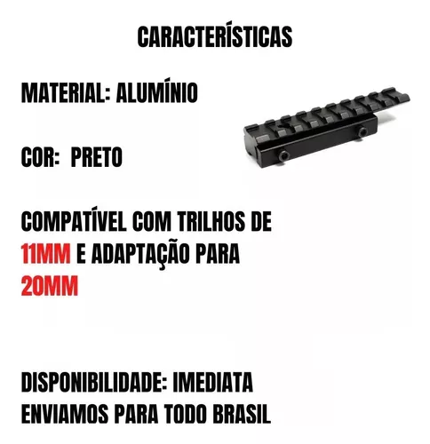 Ideal para instalar Lunetas / Lanternas /RedDot de 20mm em sua arma
