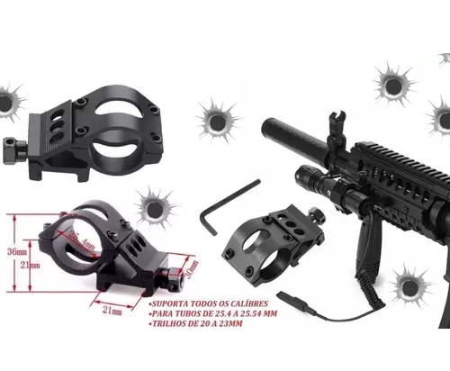 -INDICADO PARA INSTALAÇÕES DE ACESSÓRIOS(INFLA VERMELHOS,LANTERNAS,LASERS,ETC…) COM TUBO DE 24 A 25.5MM E TRILHOS DE 20 A 23MM