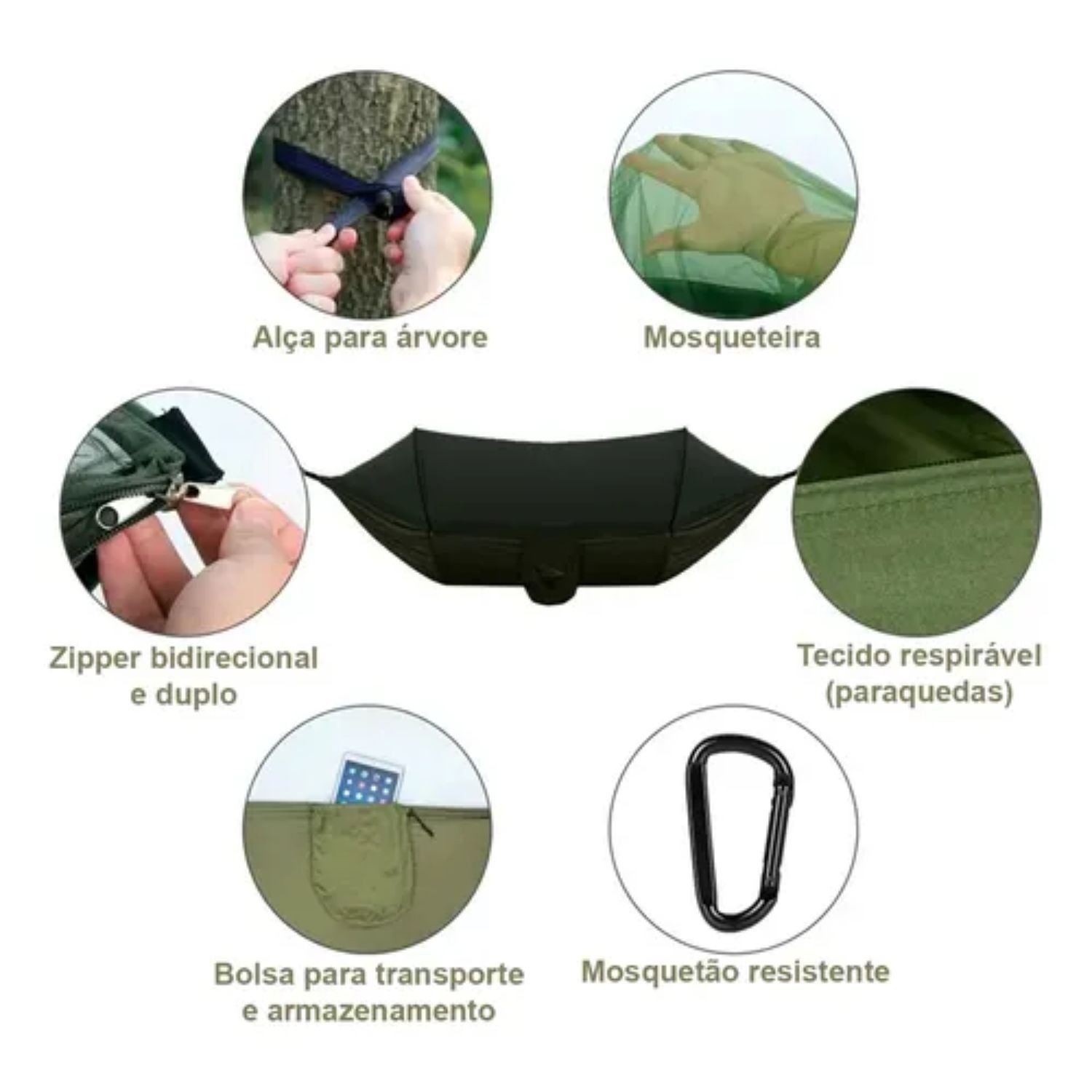 Rede de Descanso com Tela Mosquiteiro – Ideal para Camping, Trilha e Pesca