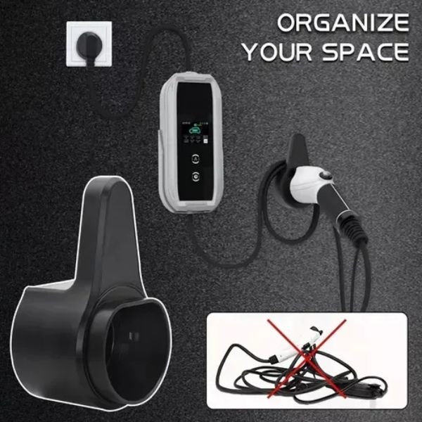 Organize e proteja seu carregador de carro elétrico com este suporte de parede para plug Tipo 2 (IEC 62196-2). Ideal para carros elétricos padrão europeu, garante mais segurança, durabilidade e praticidade na sua rotina de recarga.