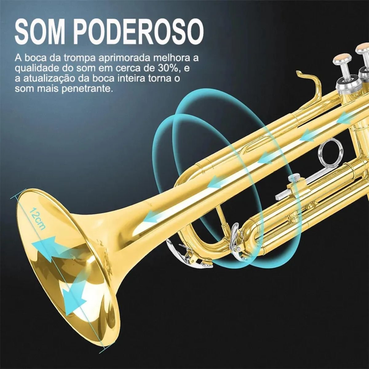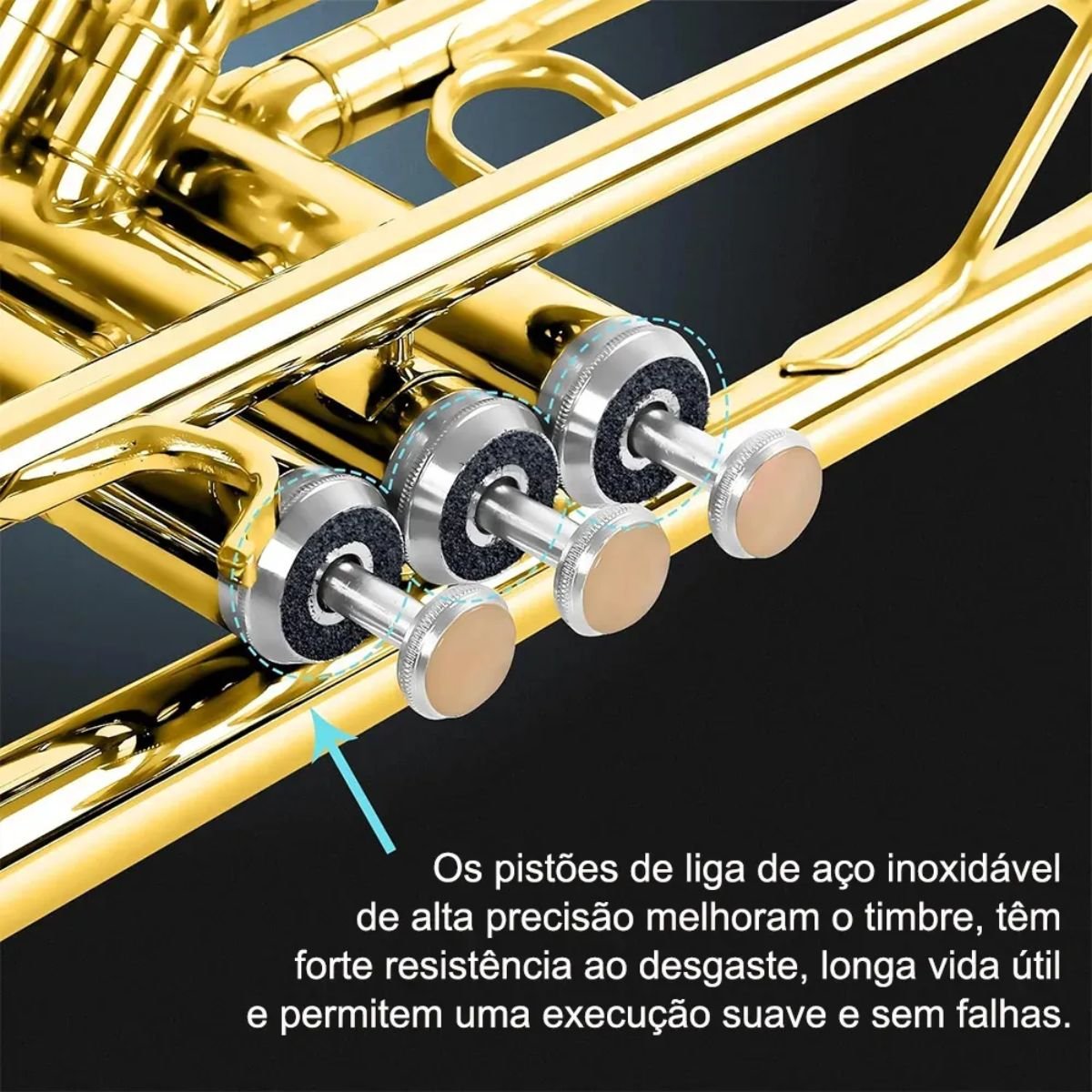 🎺 Trompete Profissional em Latão Dourado com Estojo – Ideal para Iniciantes e Intermediários